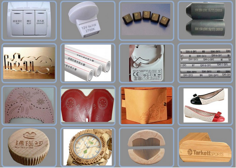 广泛应用于皮革布料、玻璃陶瓷、食品饮料包装、工艺礼品、电子、竹木制品、仪表、医药、纸质包装、树脂塑胶等行业。